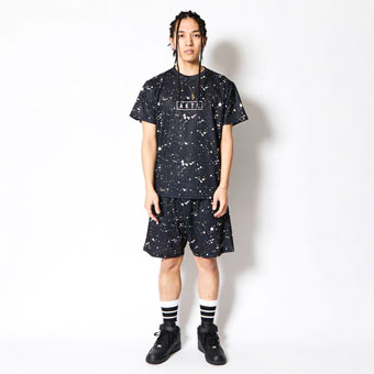 design:インクが飛び散ったようなグラフィックを全面にプリントした半袖TEEシャツ。派手過ぎずどのような服にも合わせやすいカラーリング。胸にはAKTRロゴがプリントされている。