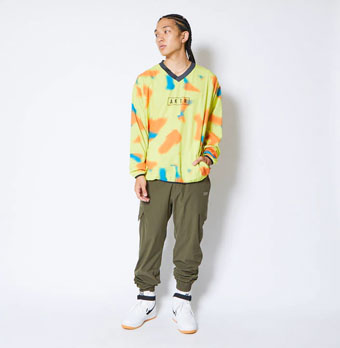 SCRIBBLE V-NECK PULLOVER SHOOTINNG SHIRTS YELLOW 124-001010 YL AKTR アクター Tシャツ ウエア 【MEN'S】【SALE商品】
