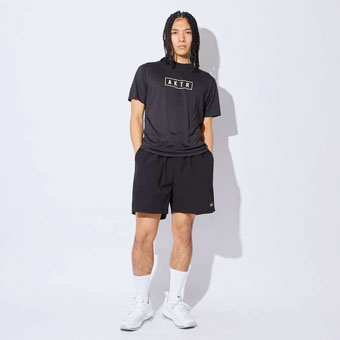 design:ワイドシルエットのショーツ。AKTRのショーツの中では股下を一番短く設定し、横巾を通常よりも広くすることにより、動きやすさを考慮したバランスのとれたシルエットになっている。シンプルでスタイリングを選ばず、合わせやすいデザイン。