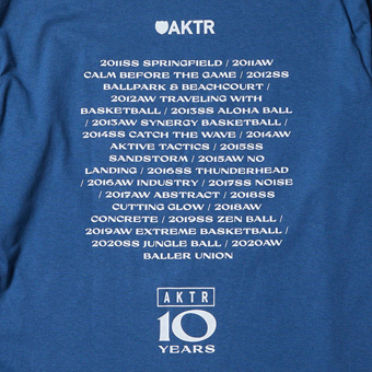 AKTRのブランド10周年を記念して作成したアイテム。これまでのシーズンテーマを背面へ大胆にデザイン。ざっくりと着やすいコットン生地を使用。