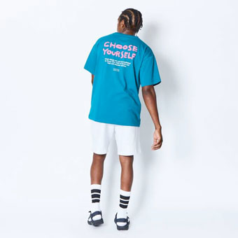 design:AKTRのタグライン「CHOOSE YOURSELF」を前後に配置した半袖TEEシャツ。function:程良い厚みのコットン100%の天竺生地を使用。着る度に肌に馴染む着心地がGOOD。