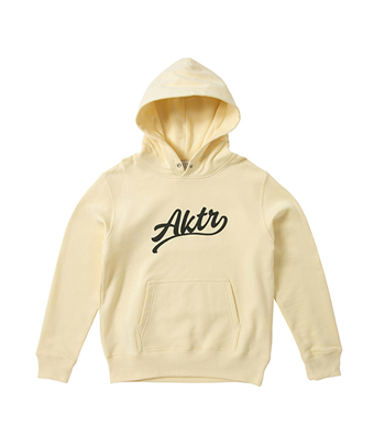 150 design:胸にAKTRの筆記体ロゴがプリントされたプルオーバーフーディー。シンプルなデザインなのでどのような服にも合わせやすく、スポーツでもライフスタイルでもシームレスに着用可能。