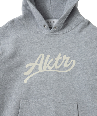 150 design:胸にAKTRの筆記体ロゴがプリントされたプルオーバーフーディー。シンプルなデザインなのでどのような服にも合わせやすく、スポーツでもライフスタイルでもシームレスに着用可能。