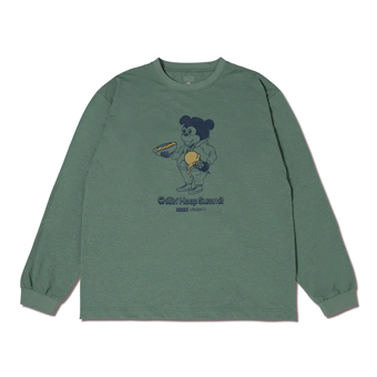 design:今回のホリデーシーズンに向けたコレクションは、リラックスした肩肘張らない雰囲気で、バスケットボールのカルチャーやコミュニティの交流を目指す架空のサミット「Chillin’ Hoop Summit」をテーマにデザイン。いつもより少しぽっちゃりしたNICKを配置した長袖TEEシャツ。身体にストレスのかからない程よくゆとりのあるシルエット。